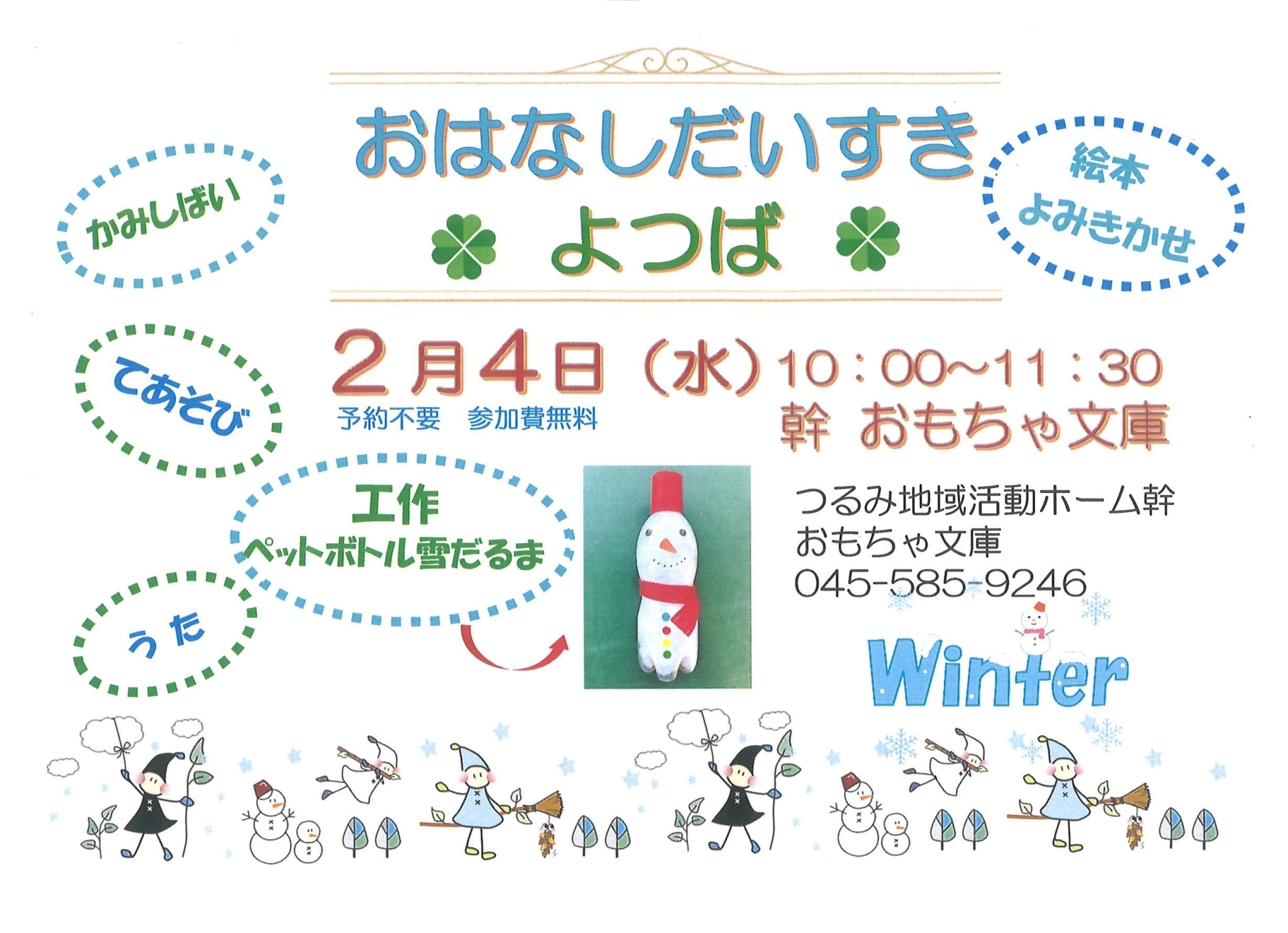 幹おもちゃ文庫「おはなしだいすき よつば」2月のご案内です♪