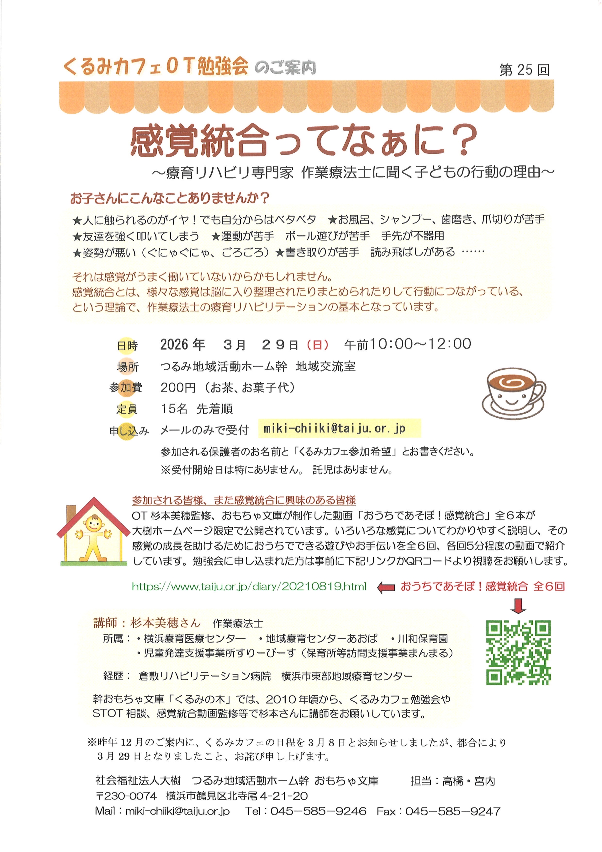 くるみカフェ OT勉強会「感覚統合ってなぁに?」参加者募集!