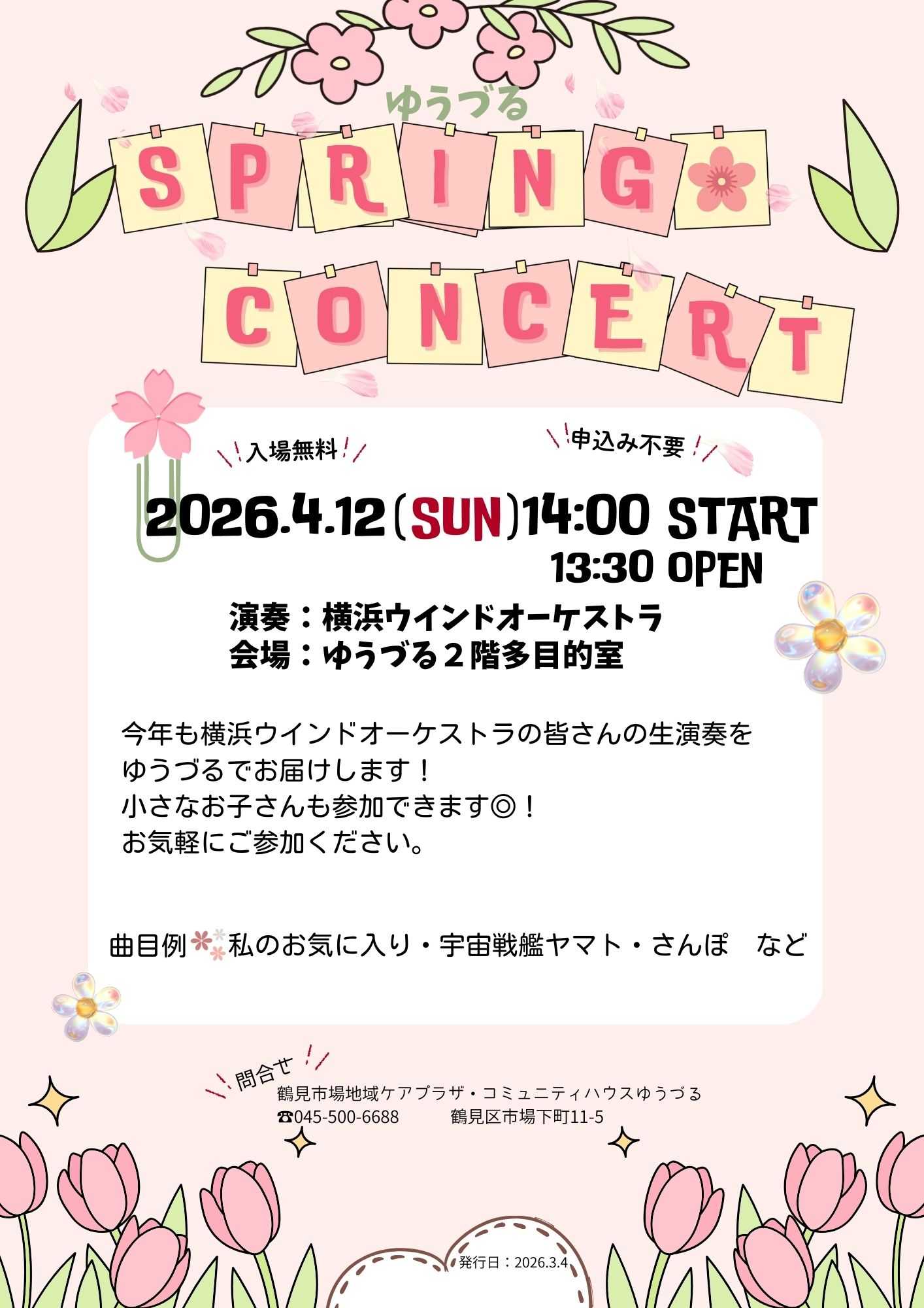 春の演奏会のお知らせです。